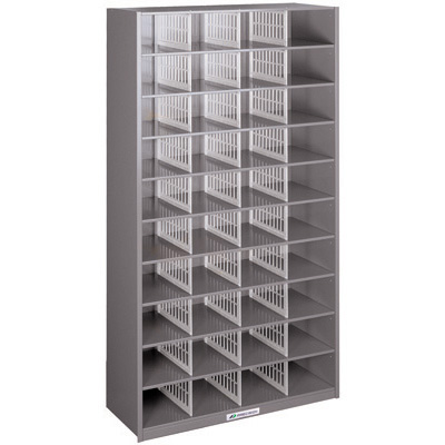PRECISION PIGEON HOLE CABINET 40 COMPARTMENTS W1037 X D386 X H1825MM SILVER GREY
