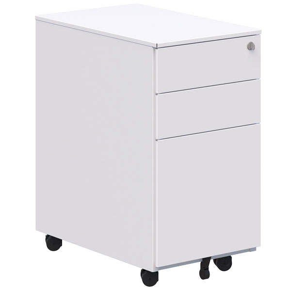 ACCENT STEEL SLIM MOBILE PEDESTAL H600 X W300 X D500MM WHITE