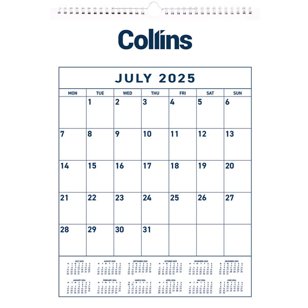 COLLINS MID YEAR CALENDAR A3 MONTH TO VIEW 2025/2026