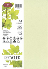 COLOURED PAPER A4 RECYCLED 110GSM AVOCADO PACK 100