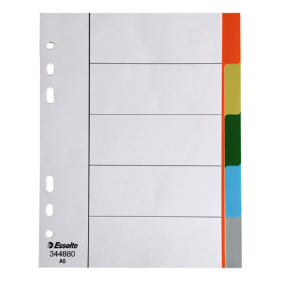 DIVIDERS ESSELTE COLOURED A5 5 TAB PP