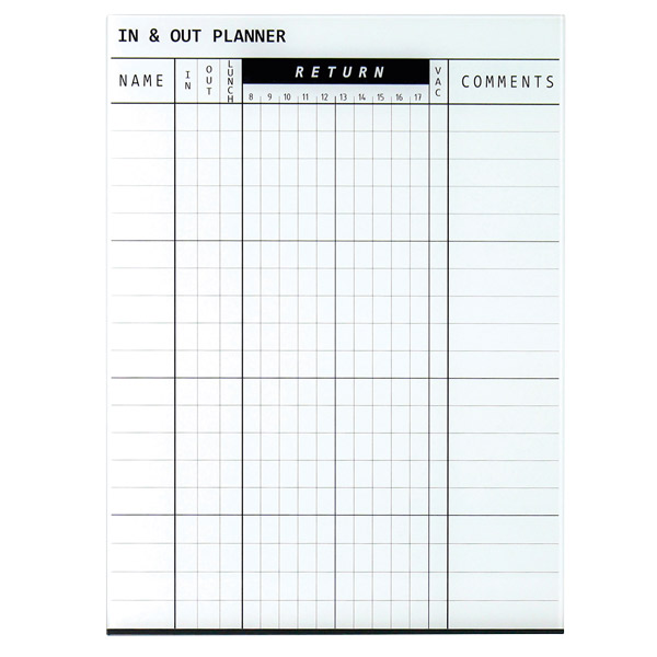 In and Out magnetic staff indicator glassboard.