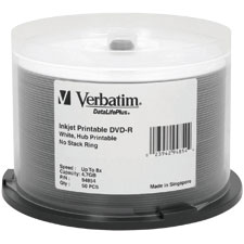 DVD-R VERBATIM 94854 8X 4.7GB INKJET HUB PRINTABLE SPINDLE PKT/50