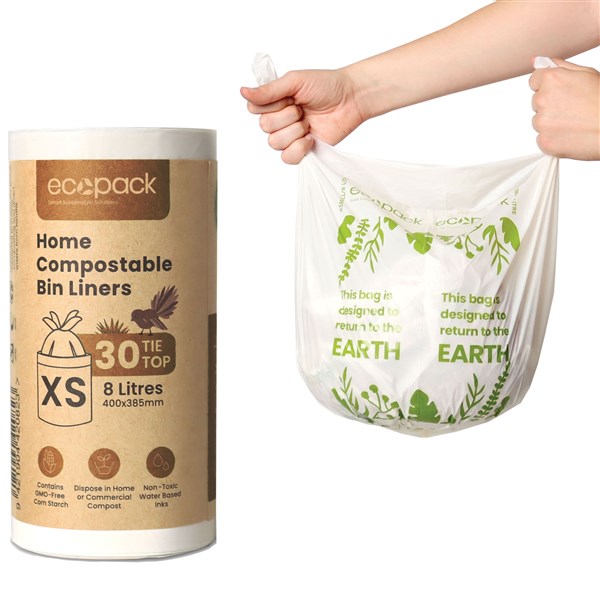 ECOPACK BIN LINERS KITCHEN COMPOSTABLE 8L ROLL 30