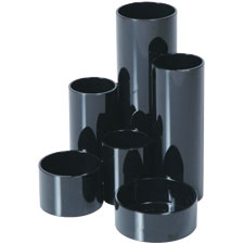 Esselte SWS pencil caddy have 6 cylinders of varying sizes which offer a practical way to store your pencils, pens, highlighters, paper clips and small stationery items