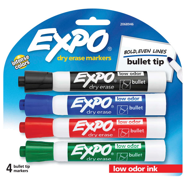 These Expo Dry Erase Markers with Bullet Tip feature non-toxic and low odour ink in assorted colours.
