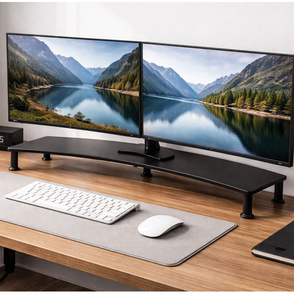 Dual height adjustable monitor stand.