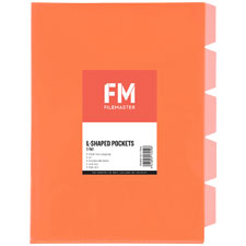 FM L-SHAPED POCKET 5 TAB A4 RED PACK 5