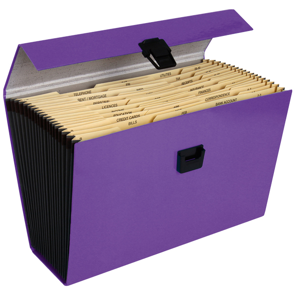 FM VIVID CONCERTINA FILE 19 POCKET GLOSS FOOLSCAP PURPLE PASSION