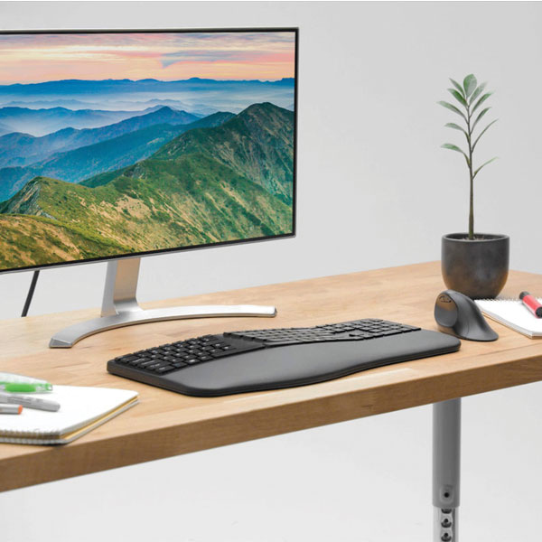 • With its split and sloped keyboard with adjustable reverse tilt and built-in wrist rest, the ergonomist-approved Pro Fit Ergo Wireless Keyboard positions your hands for improved comfort