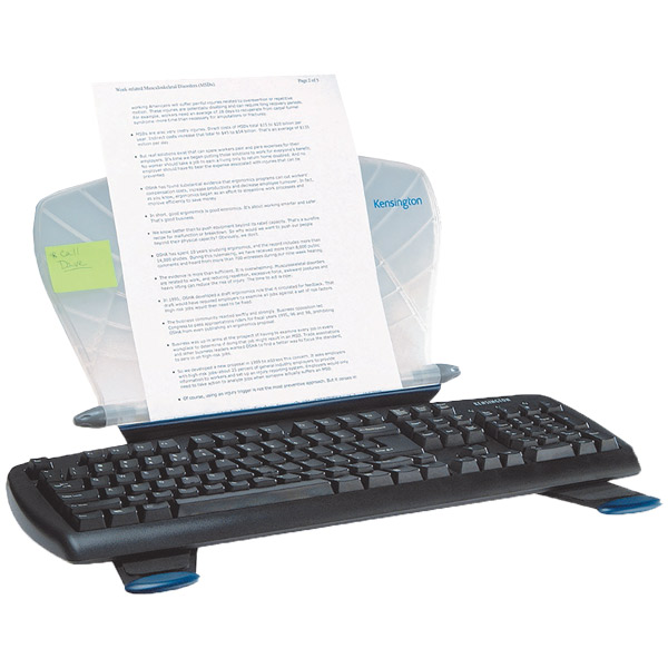 The Kensington SmartFit InSight in-line copyholder positions documents or books between the monitor and keyboard for improved computing comfort. Folds over keyboard for an extended writing surface