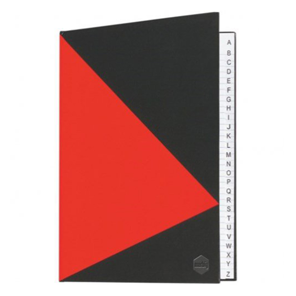 MARBIG NOTEBOOK FEINT RULED A-Z INDEX HARD COVER CASEBOUND A4 100 LEAF BLACK/RED