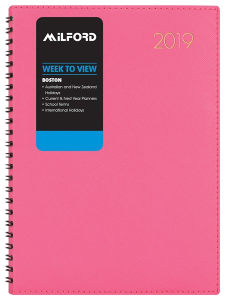 MILFORD DIARY BOSTON A53 PINK WEEK TO VIEW WIRO EVEN YEAR