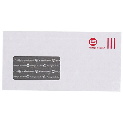 NZ POST ENVELOPE POSTAGE INCLUDED WINDOW TROPICAL SEAL DLE E20E W225 X L114MM WHITE BOX 500