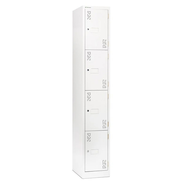 PRECISION CLASSIC LOCKER 4 TIER LATCH LOCKING W375 X D457 X H1800MM WHITE SATIN
