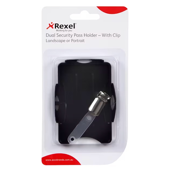 REXEL DUAL SECURITY ID PASS HOLDER WITH CLIP BLACK