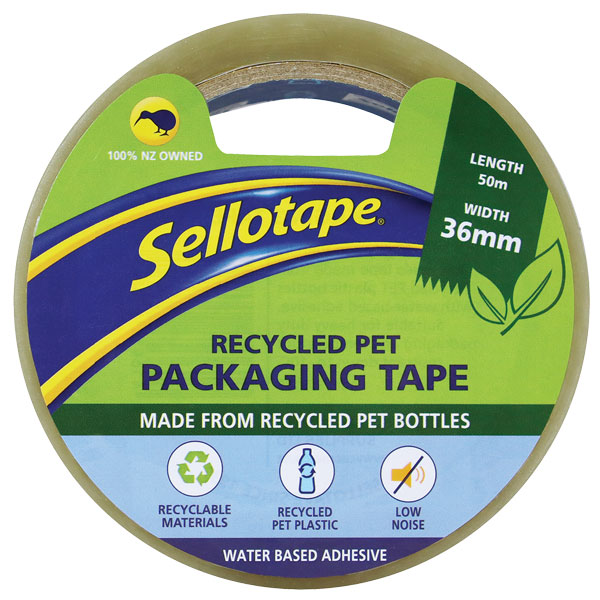 SELLOTAPE RECYCLED PET PACKAGING TAPE LOW NOISE 36MM X 50M