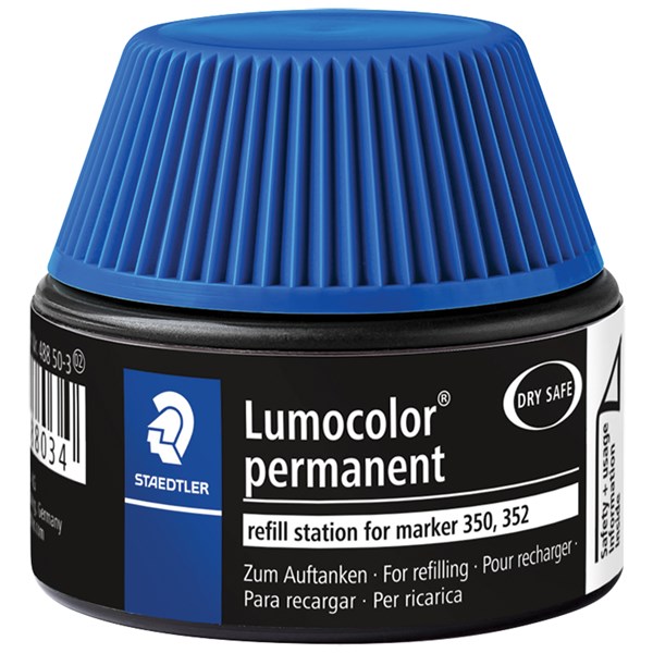STAEDTLER 488 LUMOCOLOR PERMANENT MARKER PEN REFILL POT 30ML BLUE